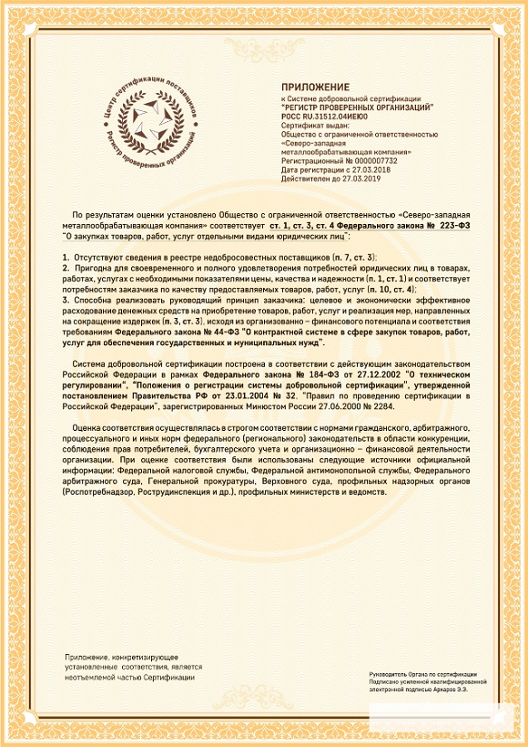 Приложение к сертификату