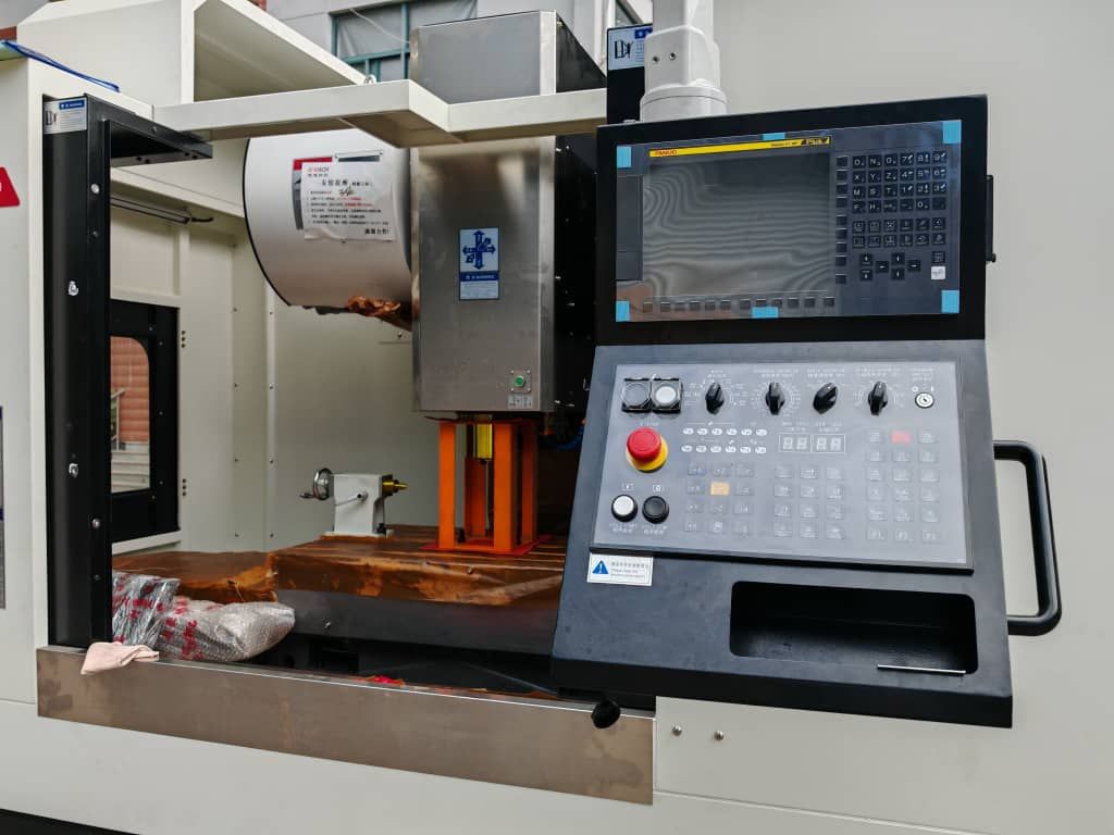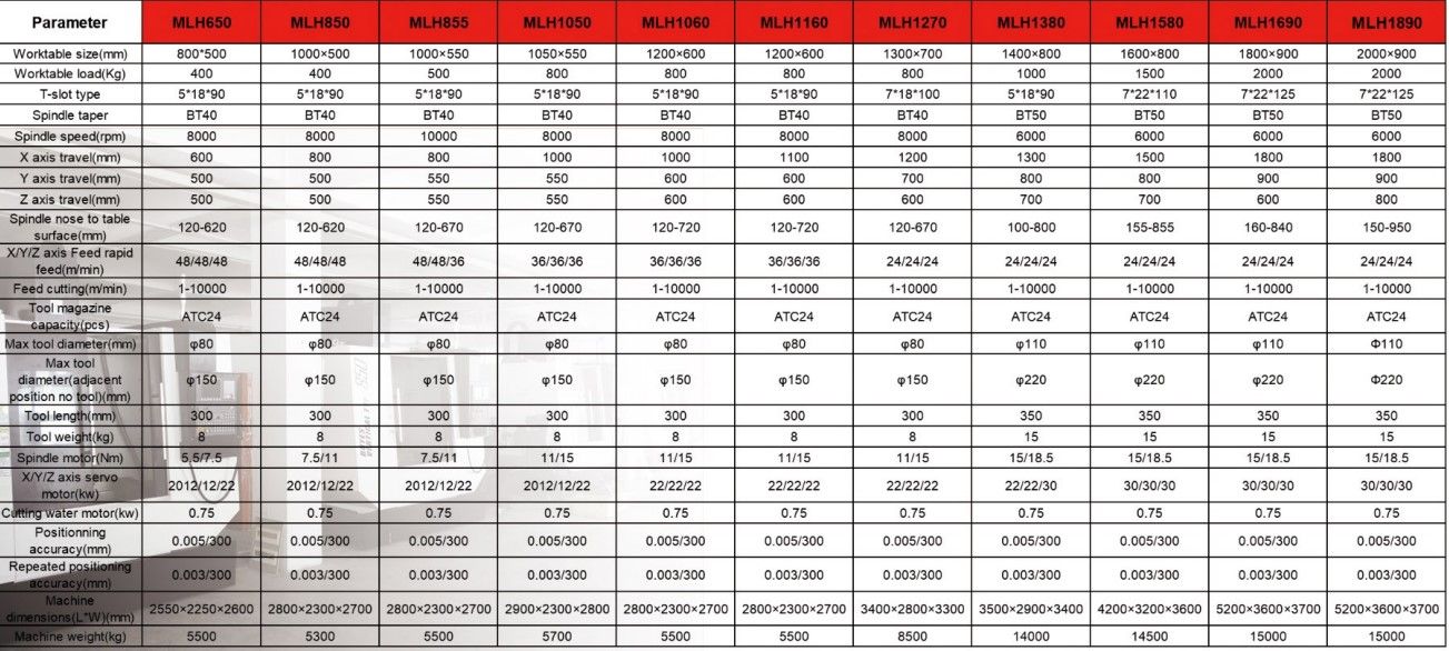 ЧПУ FANUC OI-M Размер рабочего стола(mm) 1200*600 Четвертая ось GSA (поворотный стол) CNC200R Перемещение по оси X/Y/Z(mm) 1100/600/600 Расстояние от торца шпинделя до рабочего стола(mm) 120-720 Расстояние от центра шпинделя до колонны(mm) 650 Максимальная нагрузка рабочего стола (kg) 800 Т-образная паза рабочего стола(mm) 5-18*100 Cкорость подачи по осиX/Y/Z (m/min) 36/36/36 Ширина направляющих (mm) RGH45/45/45 Размер ШВП (mm) φ4012 Точность позиционирования (mm) ±0.005 Точность повторения (mm) ±0.006/300 наименьшая индексация (mm) ±0.001 Скорость шпинделя(Rpm) 8000(сопла СОЖ) Конус шпиделя (mm) ВТ40-150 Магазин инструментов (pcs) 24Т Сервомотора X/Y/Z (Nm) 18/18/28 Мощность главного двигателя(kw) 11 Вес станка (kg) 6000 Габариты станка Д×Ш×В(mm) 2800*2450*2650 Комплектация: